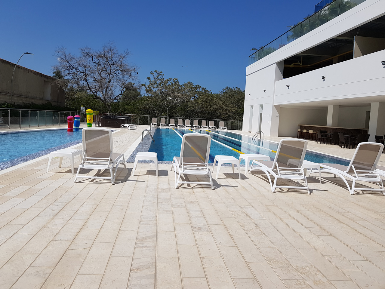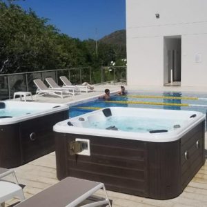 Club de playa con kioscos frente al mar, piscina infinita, de entrenamiento y para niños con juegos de agua. Jacuzzis, baño turco, Sauna, Salón de Juegos, sendero ecológico, cancha de squash, gimnasio, parqueadero y Recepción 24 horas.