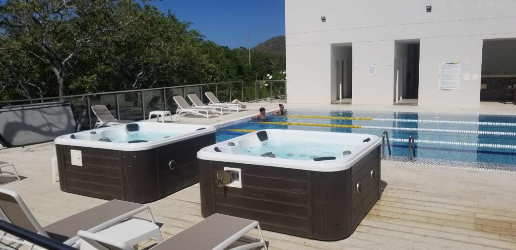 Santa Marta, sector exclusivo de Pozos Colorados, cerca de todo. Alquiler de apartamentos familiares 100% amoblados por días, primera línea y con salida privada al mar desde el condominio.