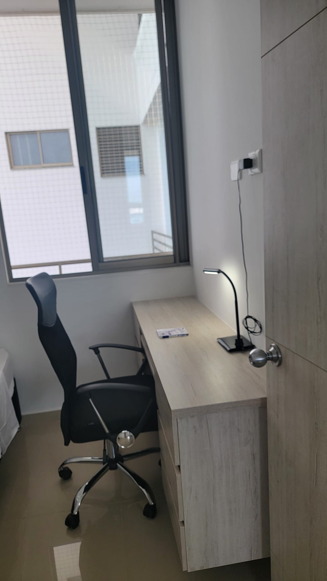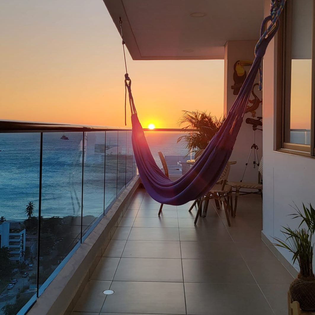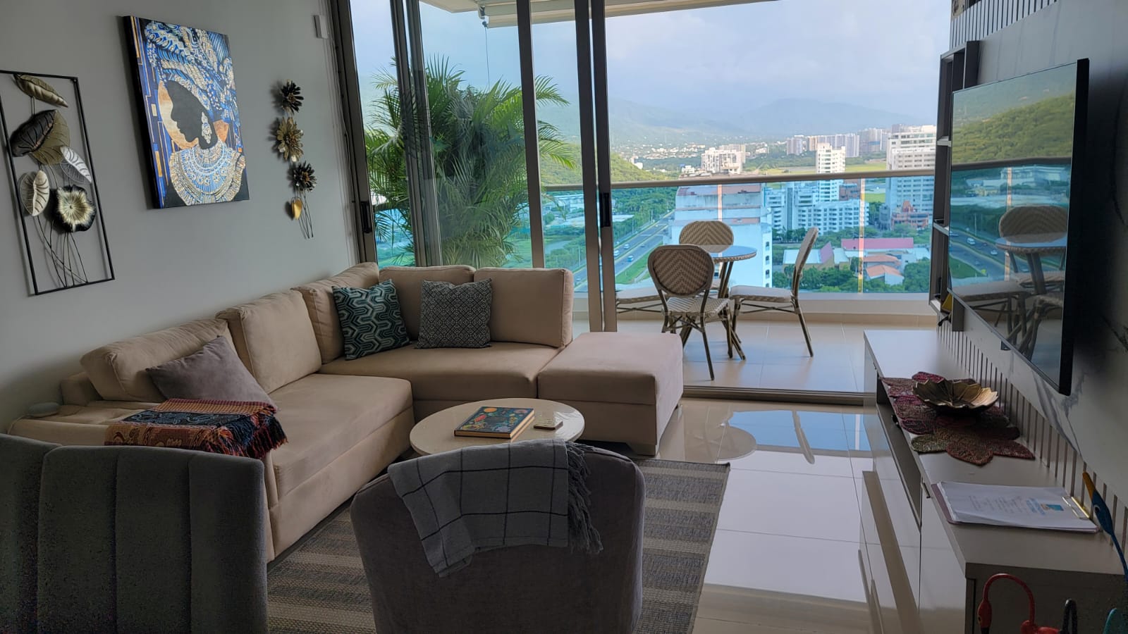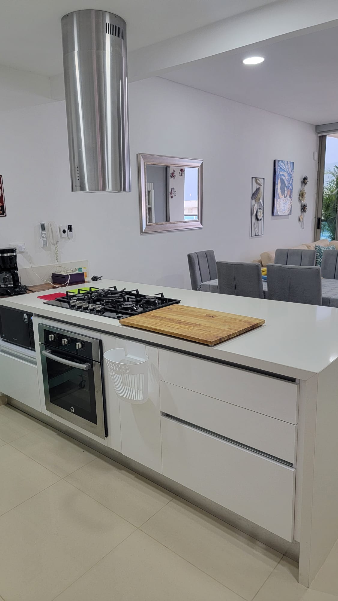 Esquinero, con excelente vista al mar desde piso 18, consta de 3 habitaciones con aire acondicionado, 2 baños, sala, comedor con aire acondicionado, balcón con vista frente al mar y BBQ, agua caliente, cocina abierta con comedor auxiliar, lavadora, secadora, nevecón con dispensador de hielo y agua, también la cocina cuenta con licuadora, cafetera, vajilla e implementos para cocinar. Las habitaciones tienen toda la lencería como sabanas almohadas, cobertores, toallas entre otros. El apartamento cuenta con servicio de Internet WiFi, estación de trabajo, 3 Smartv , cerradura inteligente y parqueadero privado.