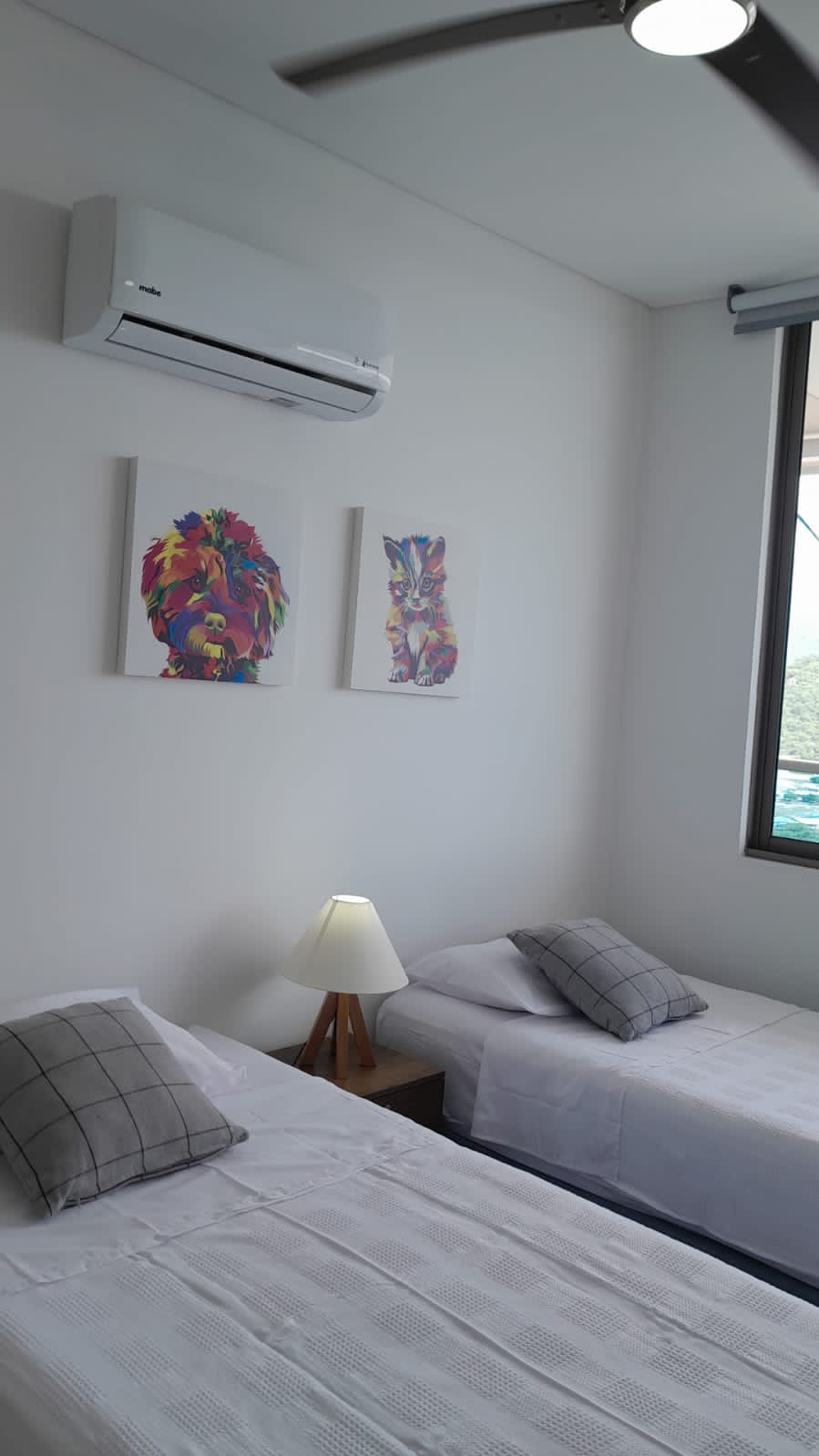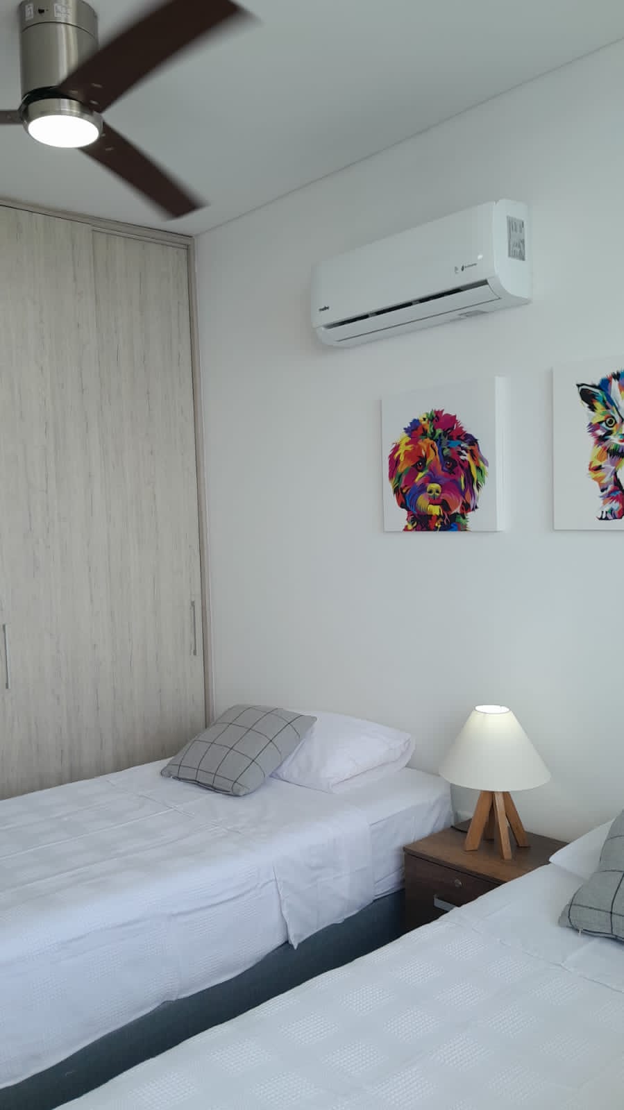 Distribución de las Camas: Alcoba principal (Cama Queen) , Habitación 2 (2 Camas sencillas), Habitación 3 (Cama sencilla con nido+ escritorio) , En la sala sofá cama sencillo.