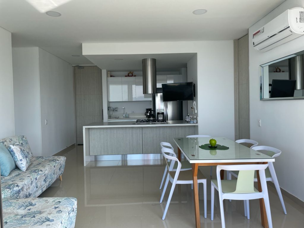 Excelente vista al mar – Apartamento nuevo completamente amoblado, con 3 alcobas , 2 baños, sala, comedor, cocina abierta, patio de ropas, balcón y parqueadero privado. para 6 huéspedes.