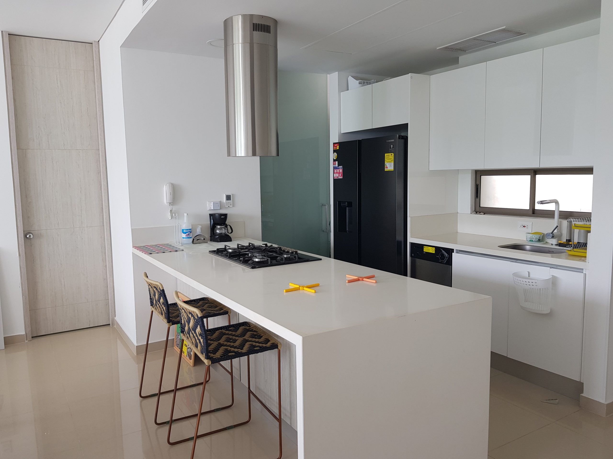 Excelente vista al mar – Apartamento nuevo completo con 3 alcobas , 2 baños, sala, comedor, cocina abierta, patio de ropas, balcón y parqueadero privado. para 8 huéspedes.