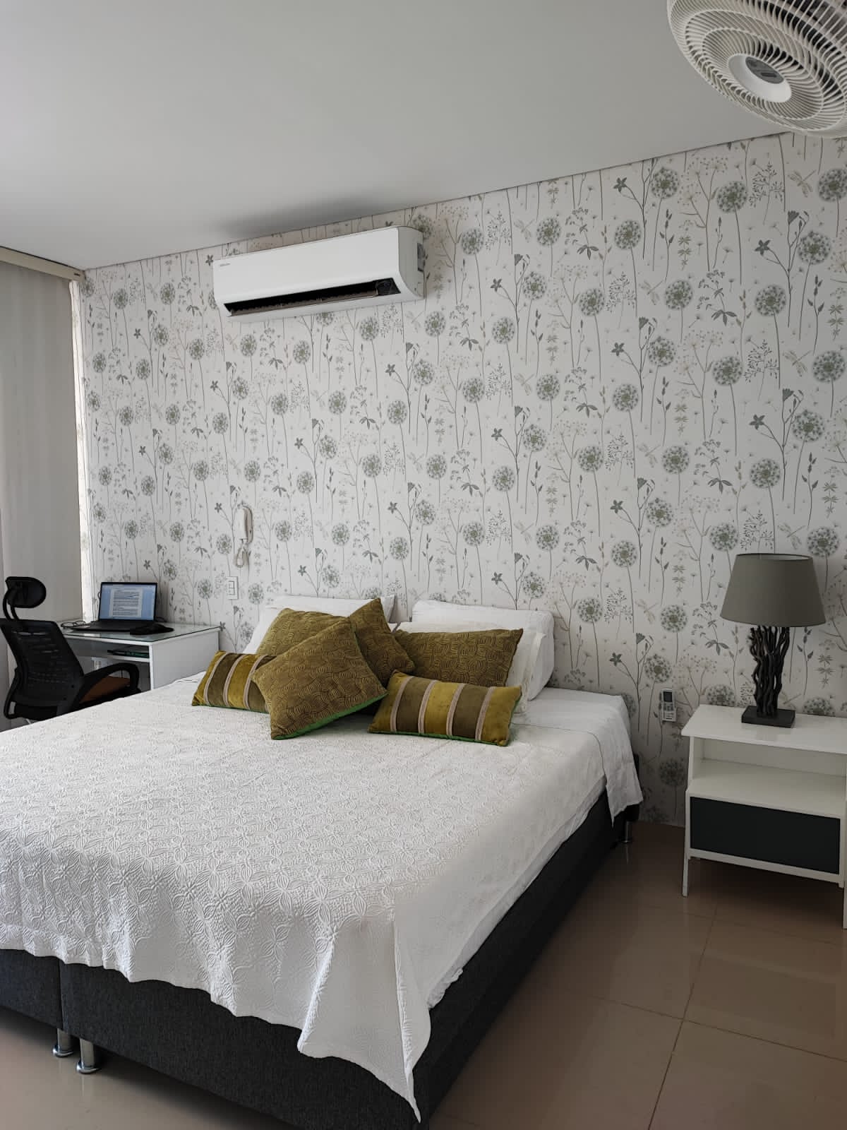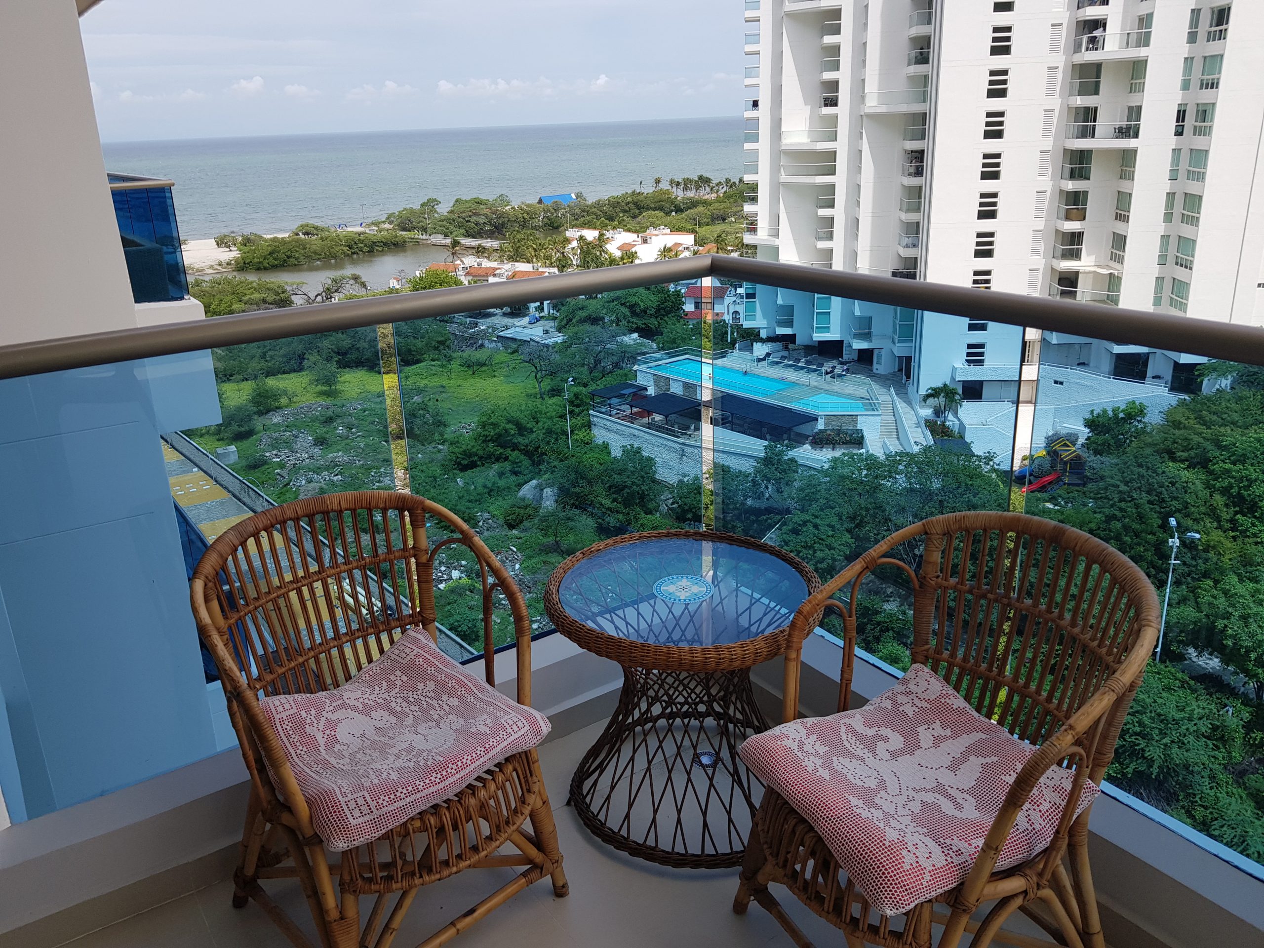 Hermoso Apartamento VIP con vista al mar desde piso 10, consta de 3 habitaciones con aire acondicionado, 2 baños, sala, comedor con aire acondicionado, balcón con vista al mar, agua caliente, cocina abierta con comedor auxiliar, lavadora, secadora, nevecon con dispensador de hielo y agua, también la cocina cuenta con licuadora, picadora , cafetera, vajilla e implementos para cocinar. Las habitaciones tienen toda la lencería como sabanas almohadas, cobertores, toallas entre otros. El apartamento cuenta con servicio de Internet WiFi, estación de trabajo, la sala y todas las habitaciones tienen Smartv , cerradura inteligente y parqueadero privado.
