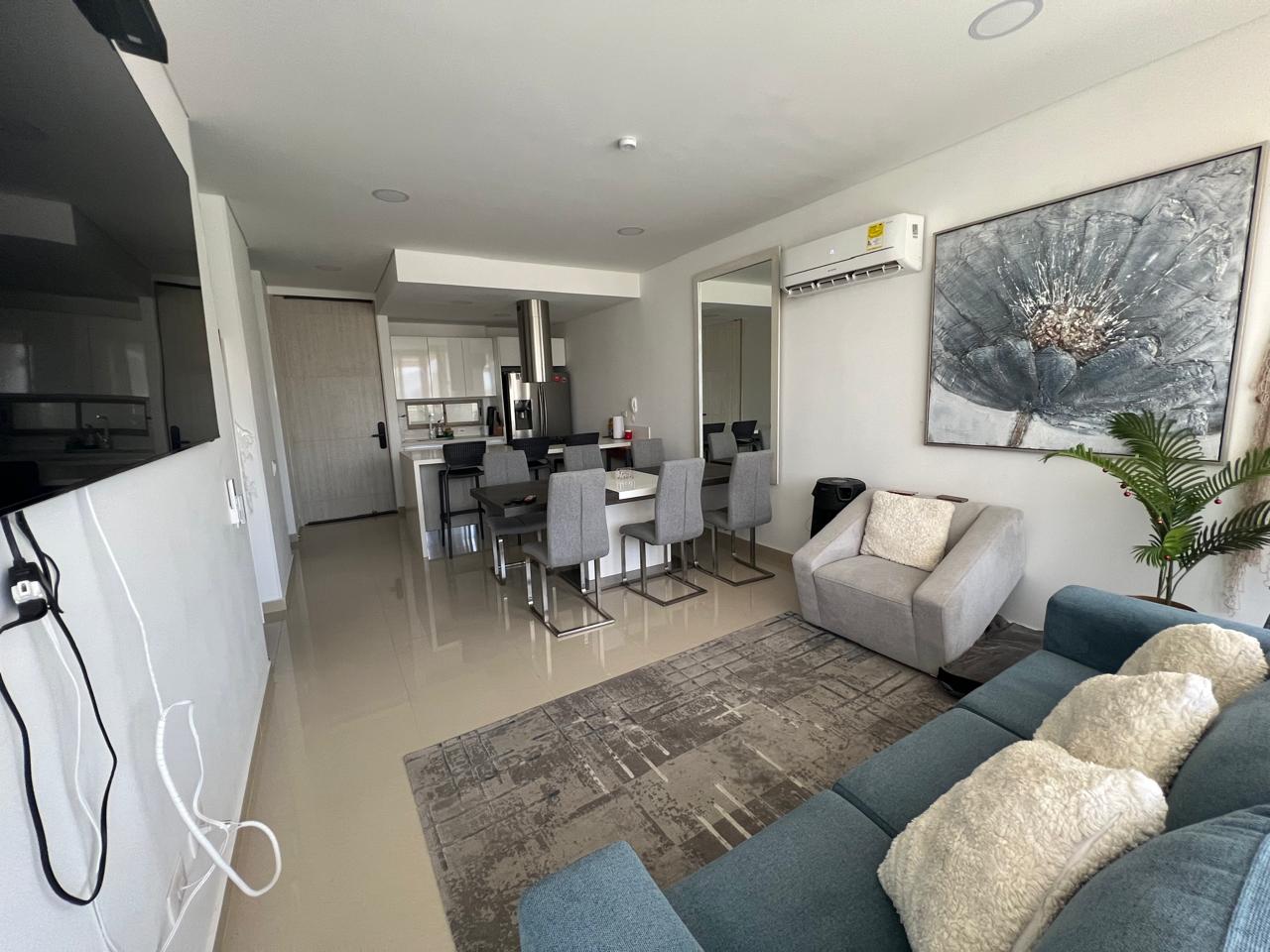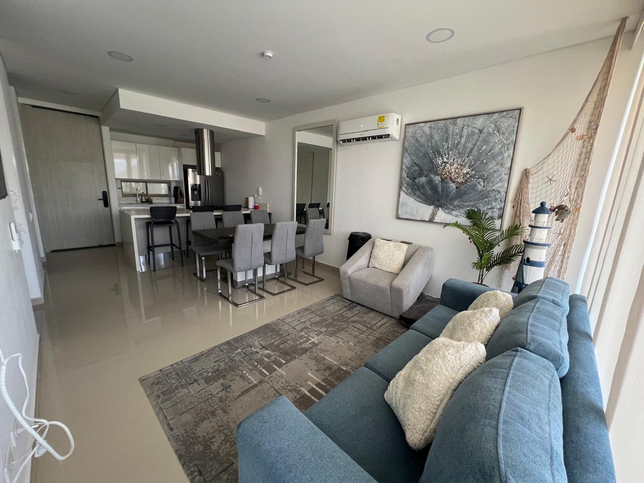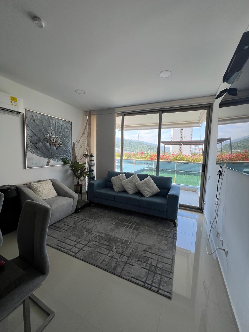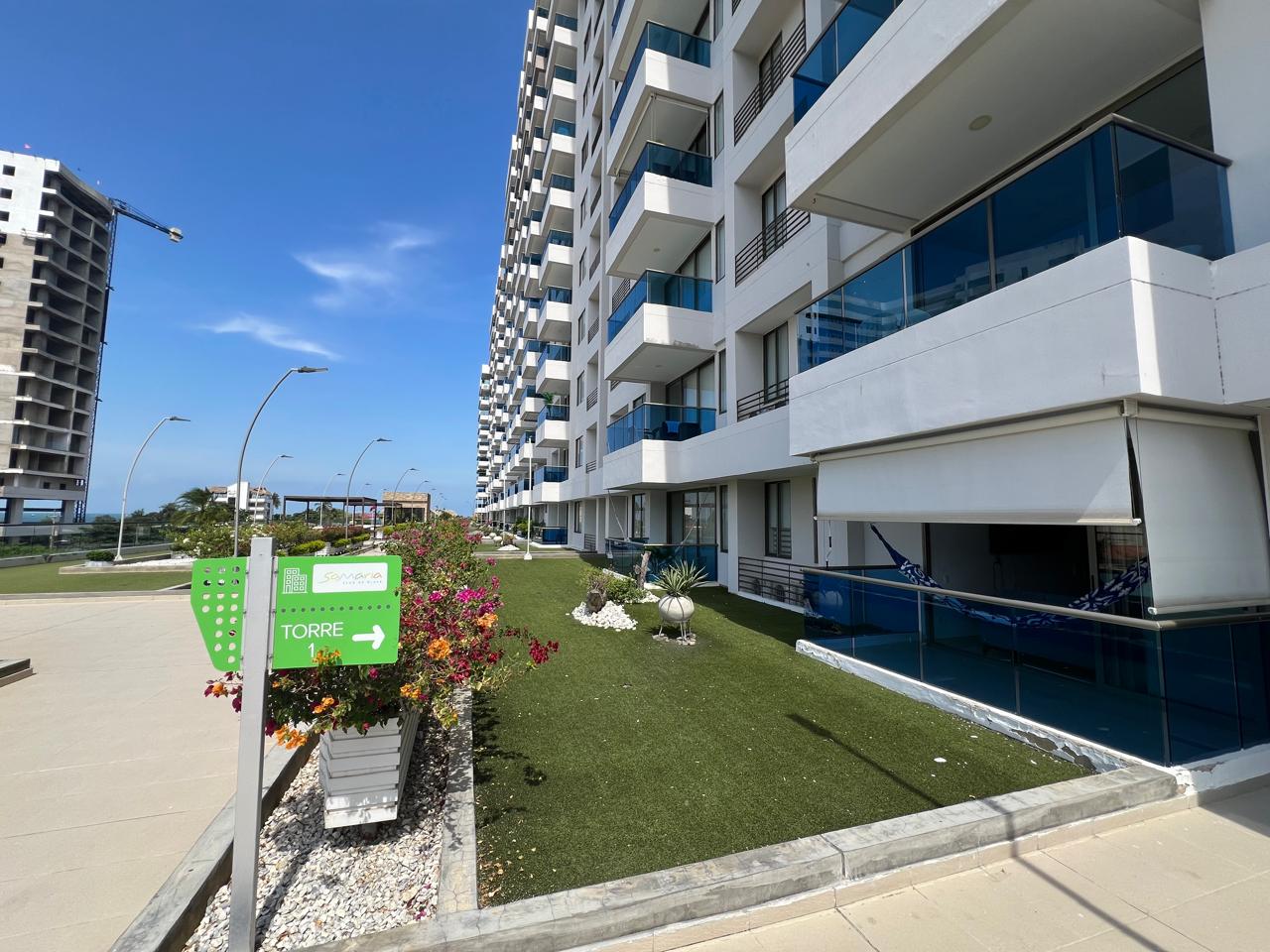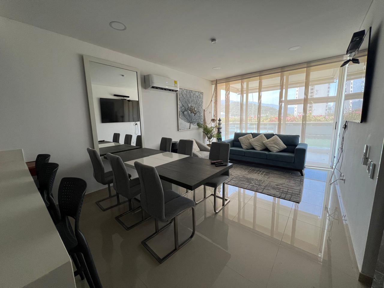 Hermoso apartamento en piso 3, vista al jardín, cerca del área de los jacuzzis, consta de 3 habitaciones con aire acondicionado, 2 baños, sala, comedor con aire acondicionado, balcón con vista al jardín, agua caliente, cocina abierta con comedor auxiliar ,nevecon y cocina con todos implementos para cocinar. Las habitaciones tienen toda la lencería como sabanas almohadas, cobertores, toallas entre otros. El apartamento cuenta con servicio de Internet WiFi, 2 Smartv , cerradura inteligente y parqueadero privado.